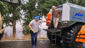 रिपोर्टर दीपक राज, अजनाला, 27 अगस्त की सुबह रावी का धुसी बंध को तोड़कर पानी आबादी वाले इलाकों में पहुँच गया था। पूरा दिन लोगों को उनके घरों से निकालकर सुरक्षित स्थानों पर पहुँचाने में बीता। देर रात तक उपायुक्त श्रीमती साक्षी साहनी, जिला पुलिस प्रमुख स. मनिंदर सिंह, अतिरिक्त उपायुक्त श्री रोहित गुप्ता पानी से घिरे घरों से लोगों को बाहर निकालने के लिए जुटे रहे। 28 अगस्त को सुबह 4 बजे उपायुक्त श्रीमती साक्षी साहनी और अतिरिक्त कार्य आयुक्त श्री रोहित गुप्ता अपनी टीमों के साथ अमृतसर से फिर रवाना हुए। रमदास से, जहाँ कल तक वाहनों का काफिला निकलता था, आज पानी ने रास्ता रोक दिया था। वाहनों को वहीं खड़ा करके ट्रैक्टरों से आगे बढ़ने का निर्णय लिया गया और उपायुक्त ने अतिरिक्त उपायुक्त के नेतृत्व में ट्रैक्टरों पर जवानों को भेजा ताकि वे लोगों को उनके घरों से निकालकर सुरक्षित स्थानों पर पहुँचा सकें। कल रात किए गए प्रयासों के चलते आज सुबह-सुबह सेना के जवान भी पहुँच गए हैं। उन्हें ऐसी परिस्थितियों से निपटने का प्रशिक्षण दिया गया है। इसके अलावा, ट्रैक्टर या किसी अन्य साधन के फंसने की स्थिति में वे अपनी नावें और वाहन भी साथ लाए हैं। फ़िलहाल, पानी में फंसे लोगों को सुरक्षित स्थानों पर पहुँचाने का काम जारी है और उपायुक्त स्वयं इसका नेतृत्व कर रहे हैं। बचाव अभियान शुरू हो गया है। गाँवों में फंसे लोगों को निकालने के लिए टीमें जा रही हैं। रामदास क्षेत्र में पानी में फंसे लोगों को सुरक्षित स्थानों पर पहुँचाने का काम सुबह से ही जारी है। बचाव अभियान चला रही टीमें अलग-अलग गाँवों से लोगों को बाहर निकाल रही हैं और ज़िला प्रशासन सभी को राहत सामग्री के साथ-साथ भोजन भी उपलब्ध करा रहा है। किसान मज़दूर संघर्ष समिति के प्रदेश महासचिव सरवन सिंह पंधेर भी लोगों की मदद के लिए ट्रैक्टर ट्रॉलियों के साथ मौके पर पहुँचे और प्रशासन से कहा कि जब भी कोई सामान हो, उन्हें ले जाया जाए।